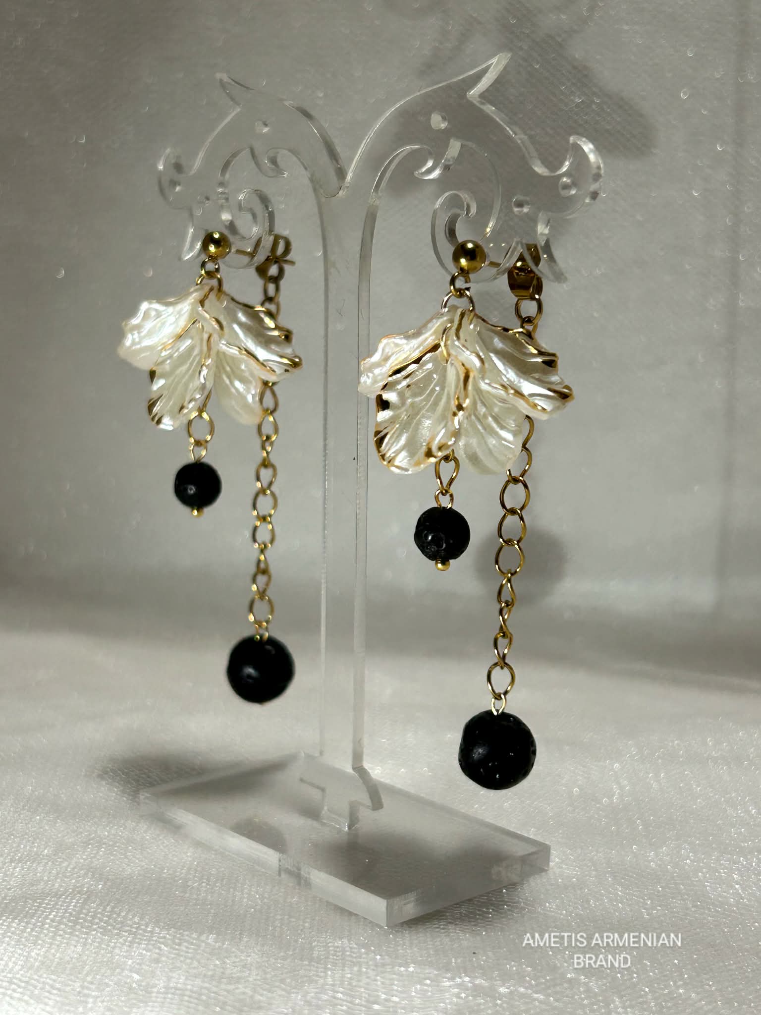 Natural shell inner layer (Pearl shell), combined with natural black Lava stones ✨ Feminine, expre...