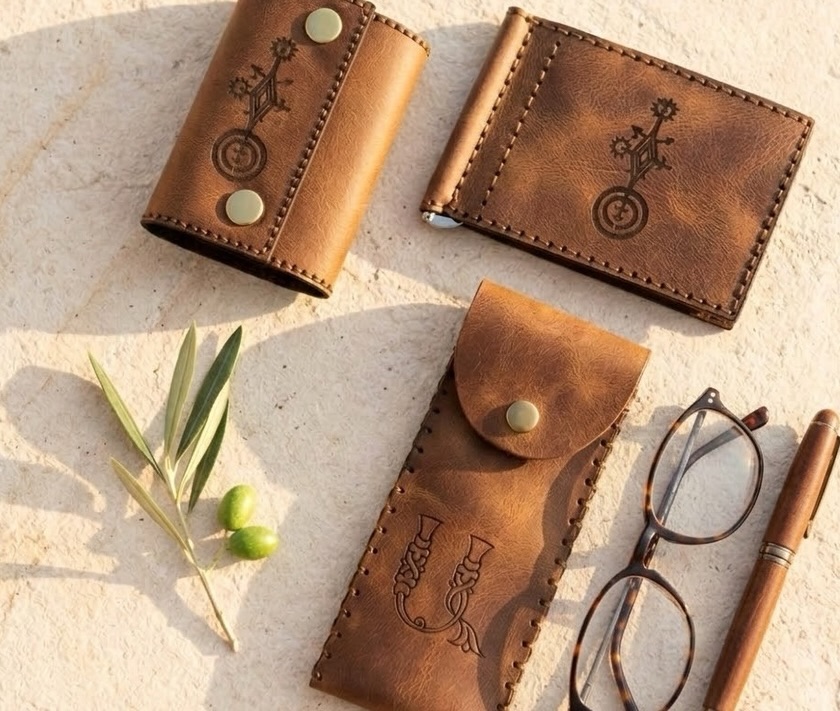 A gift that will not be forgotten Genuine leather set: mechanical wallet glasses case | pen case...